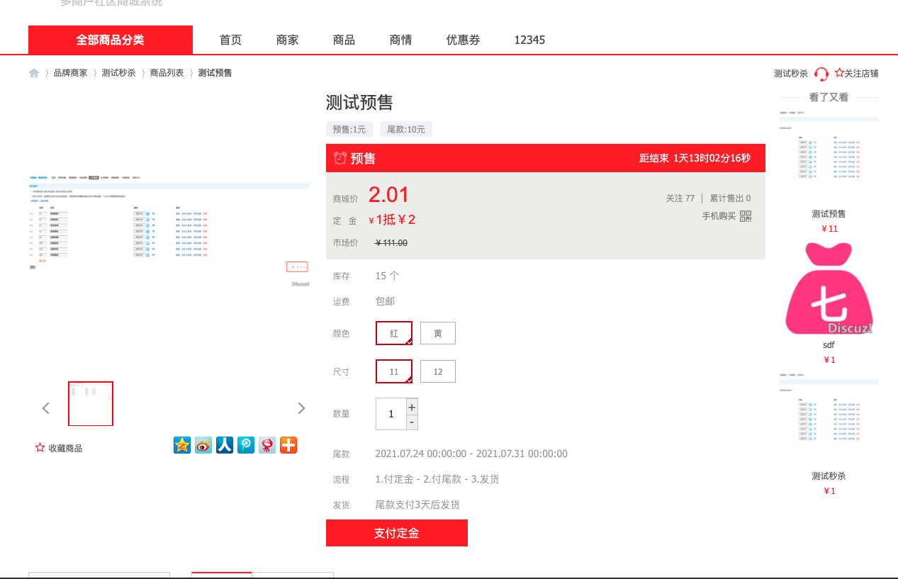 [亮剑]商城商品预售 2022101001(aljsdj)